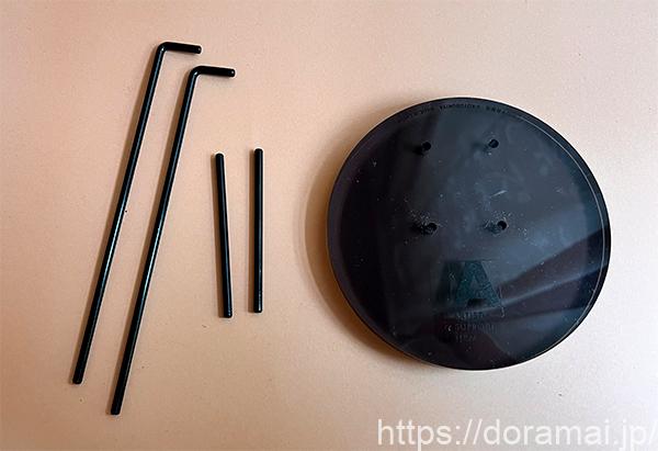 手首の向きによって使い分けるため、短い支柱と長い支柱が付属しています。